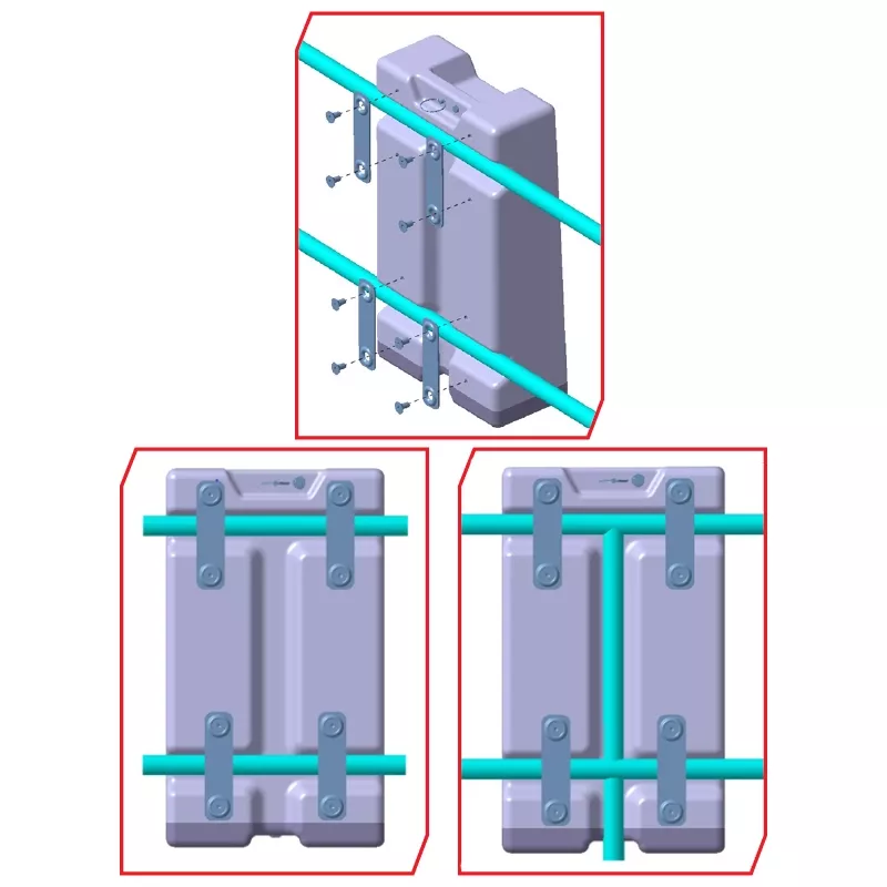 LALIZAS MOB fácil de instalar incluye un estuche duradero de HDPE, Danbuοy inflable de alta visibilidad ensamblado con la LUZ LED parpadeante LALIZAS para chaleo salvavidas "Safelite IV" USCG, SOLAS/MED, boya inflable de alta visibilidad con silbato LALIZAS, piezas de acero inoxidable para su colocación sobre barandillas. Los artículos MOB se inflan automáticamente después del lanzamiento.